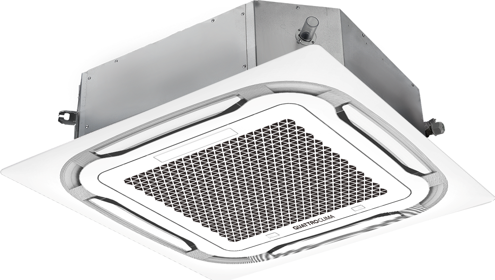 Кассетная сплит-система Quattroclima QV-I36CG1/QN-I36UG1/QA-ICP12, мощность охлаждения 10.55 кВт, мощность обогрева 11.7 кВт, площадь помещения 105 кв.м., хладагент R 410A