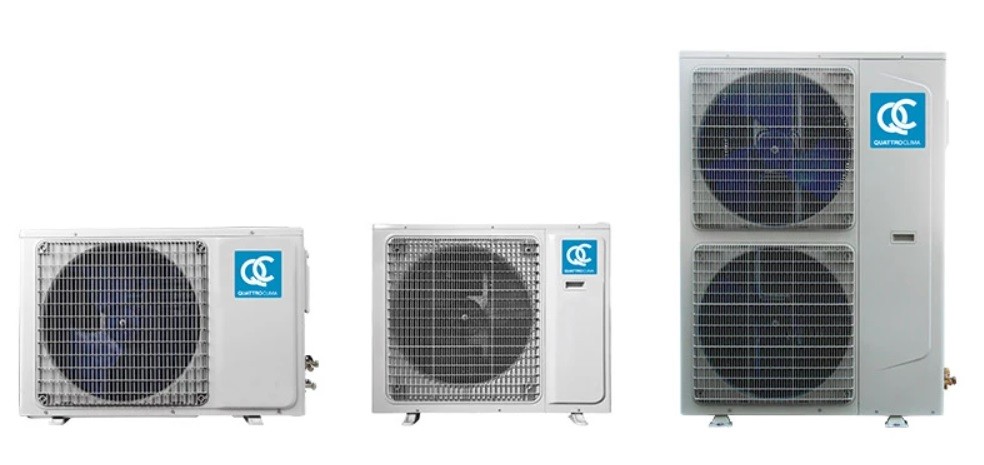Внешний блок кассетной системы кондиционирования воздуха QUATTROCLIMA (Кватроклима) QV-I48CG/QN-I48UG/QA-ICP10 оснащен универсальным японским роторным компрессором, а корпус защищен от воздействия атмосферных осадков и ультрафиолета. Устройство оснащено сливным насосом для удаления конденсата.