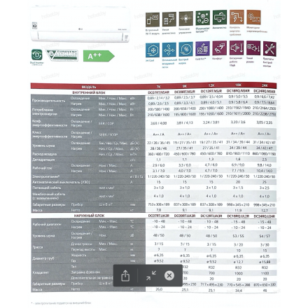 | Шум внешнего блока, дБ | 54 — 57 |
