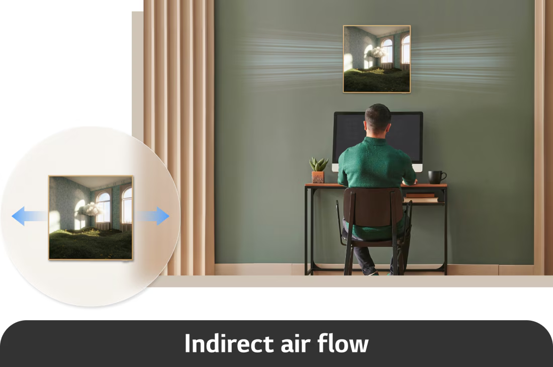 Работа LG Inverter Artcool Gallery в режиме интенсивного нагрева позволяет эффективно нагревать помещение в переходный отопительный период - время года, когда система центрального отопления не работает, так как температура наружного воздуха уже достаточно высокая или недостаточно низкая. В большинстве регионов России - это октябрь и апрель.