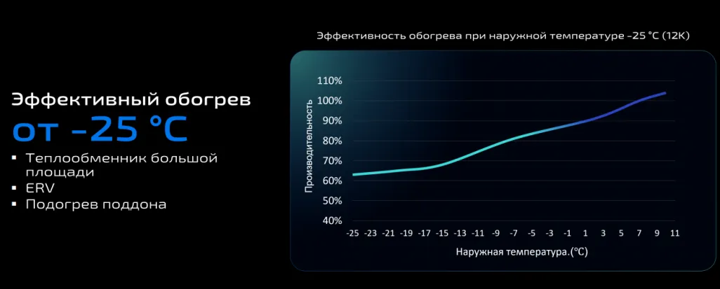 | Рабочий диапазон температур при обогреве, °C | от -25 °C до +30 °C |