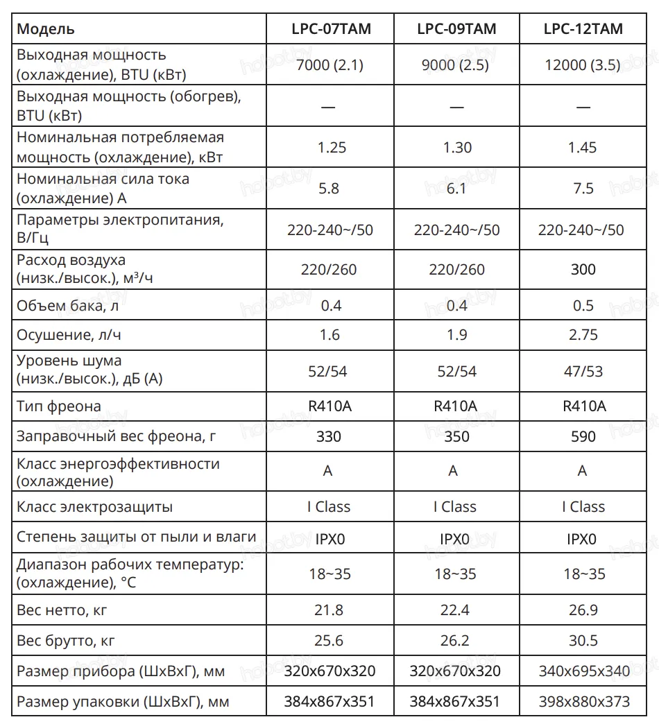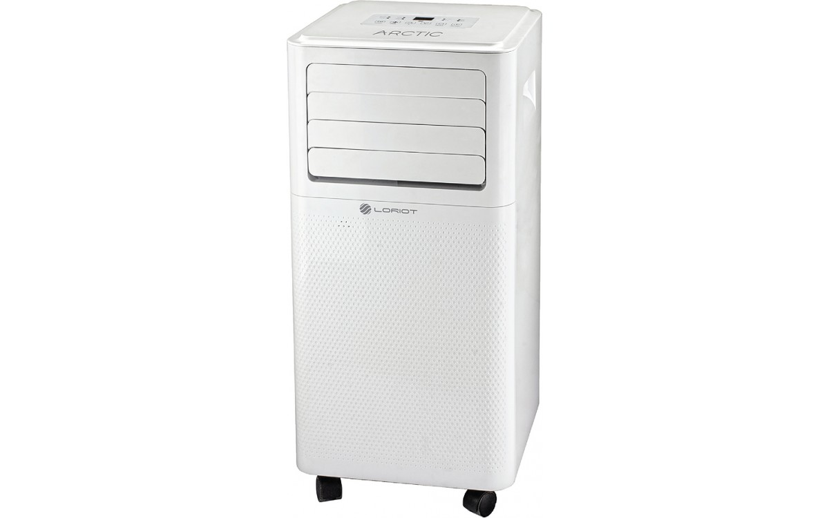 Мобильный кондиционер Loriot LPC-09TAM напольный с режимами охлаждение и осушение, мощность охлаждения 2.5 кВт, обслуживаемая площадь 25 м², шум 52 дБ, Wi-Fi: нет, ионизатор