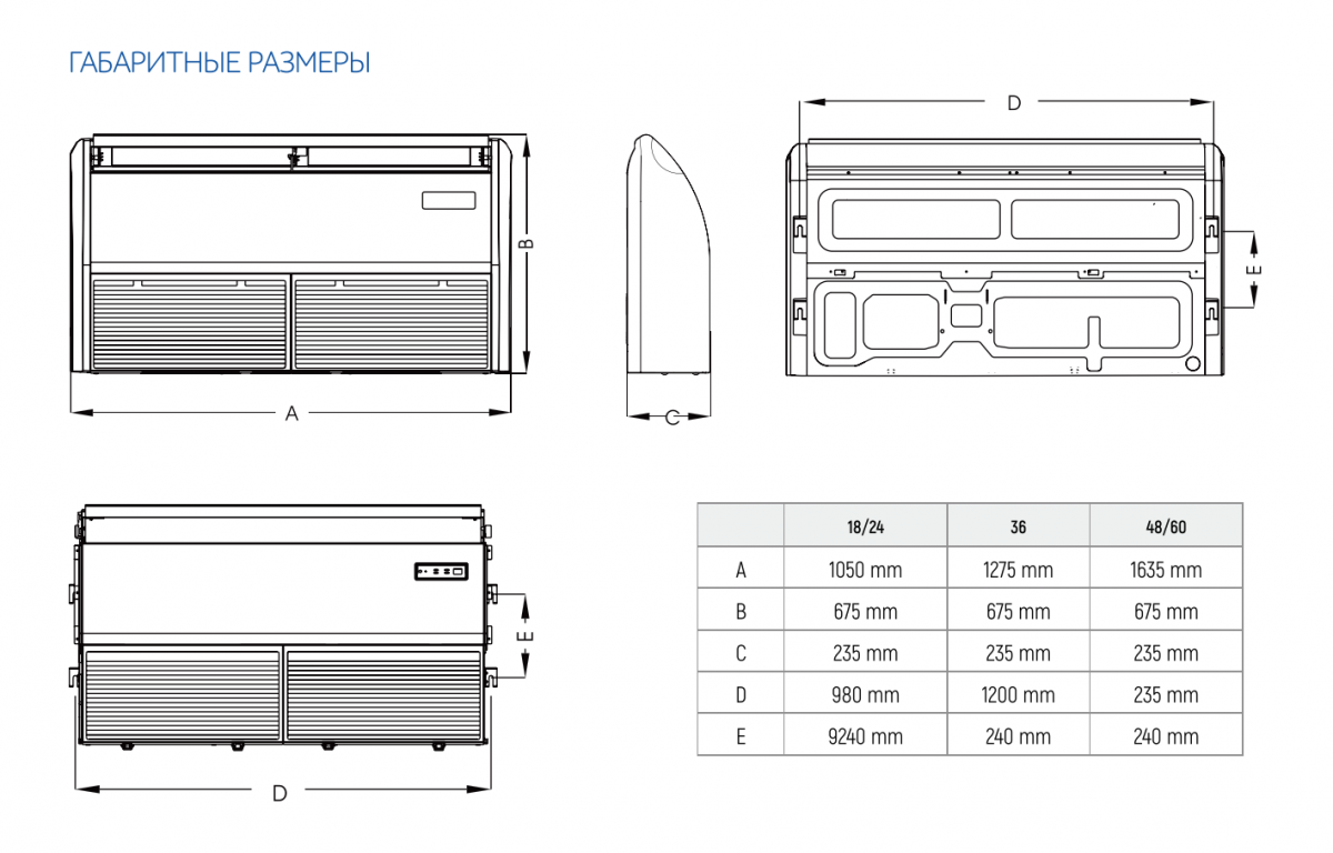 | Габаритные размеры внутреннего блока | 1635х675х235 мм |