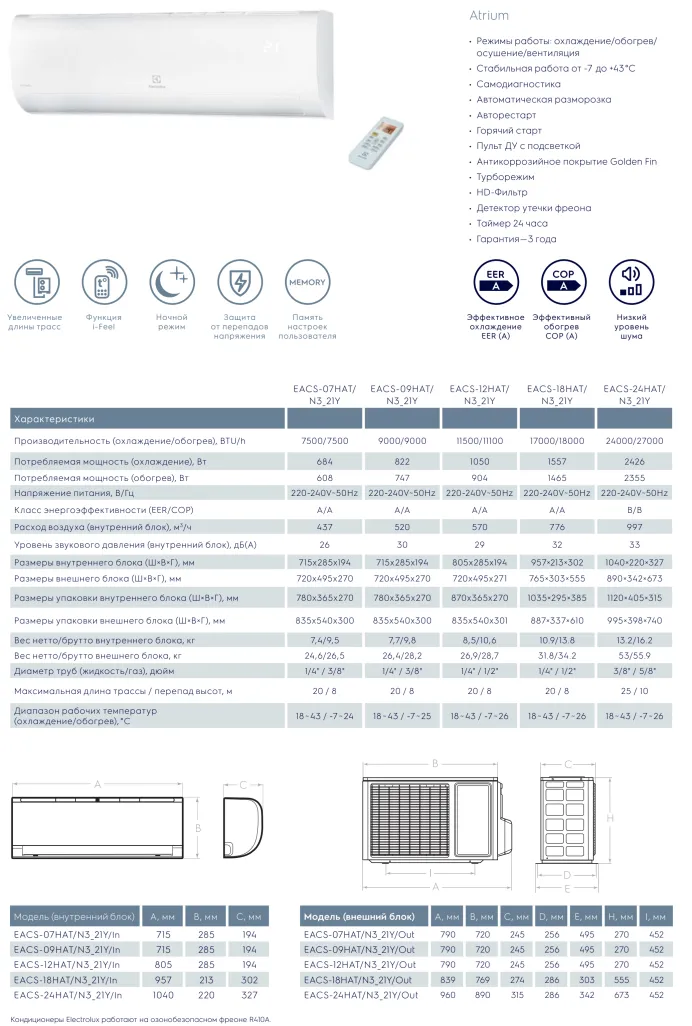 Особенности и преимущества Electrolux EACS/I-18HAT/N3_21Y: