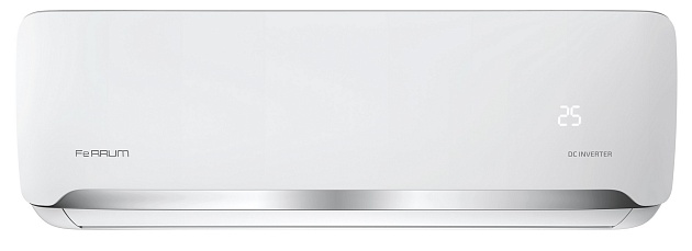 Сплит-системы Ferrum серии Force c принципом работы "старт-стоп" представлены в белом цвете, просты в управлении и эксплуатации. Данная серия имеет отличительные функции, а именно: объемное распределение воздушного потока; самоочистка внутреннего блока.