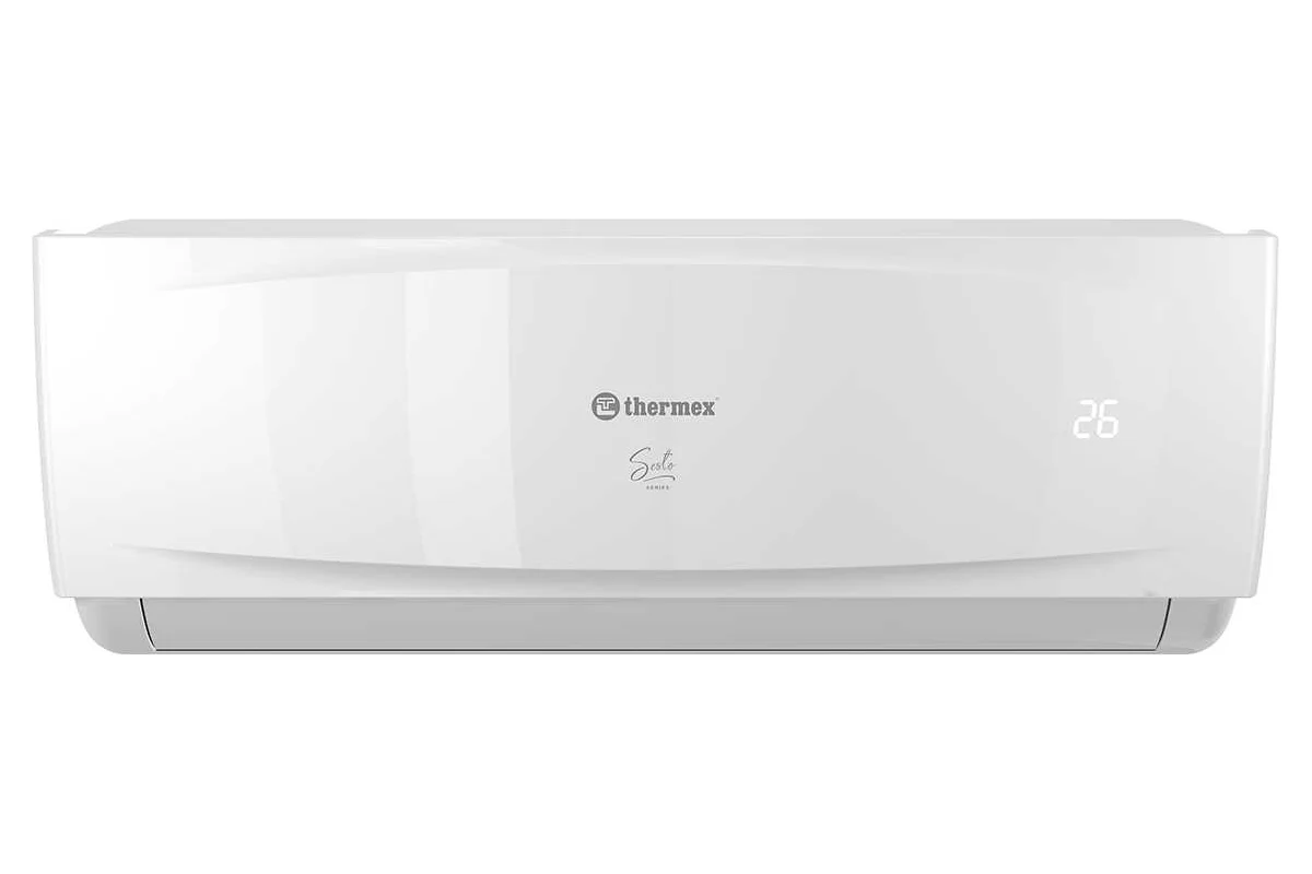 Сплит-система инверторного типа Thermex Sesto 9, настенный внутренний блок, мощность охлаждения 2.6 кВт, мощность обогрева 2.7 кВт, площадь обогрева до 25 м2, хладагент R 410A