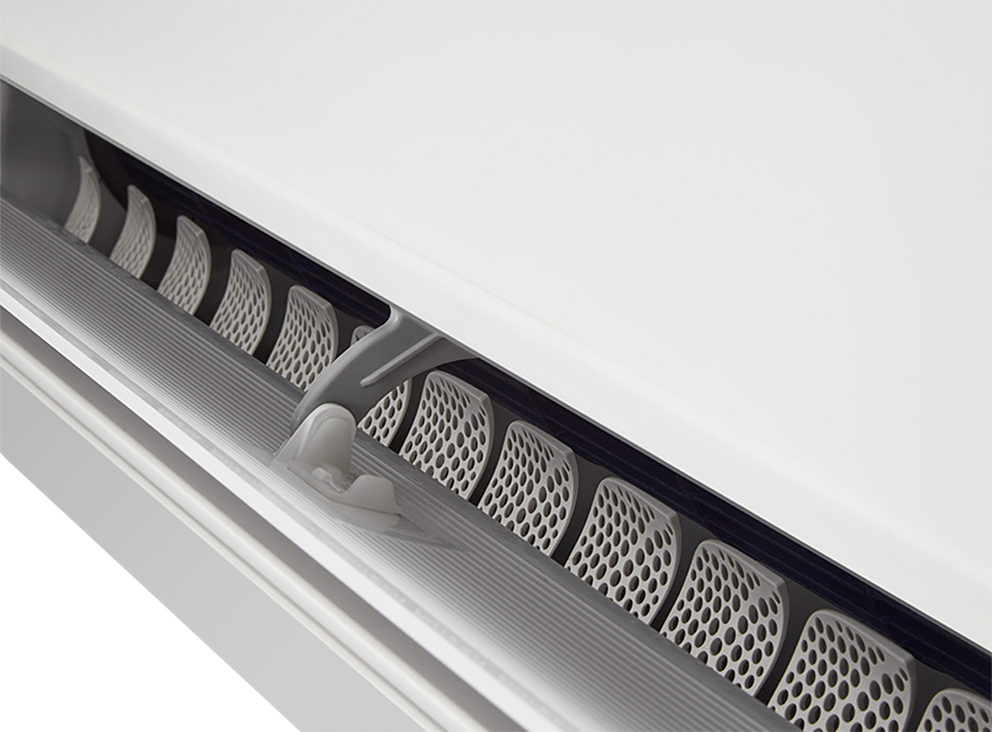 Технология Gentle Wind - деликатный поток воздуха Инверторная сплит-система Barocco DC оснащена уникальными перфорированными жалюзи, благодаря которым поток воздуха плавно и равномерно распределяется в помещении. Просто выберете режим «охлаждение» и зажмите кнопки «FAN» и «MUTE» на пульте дистанционного управления.