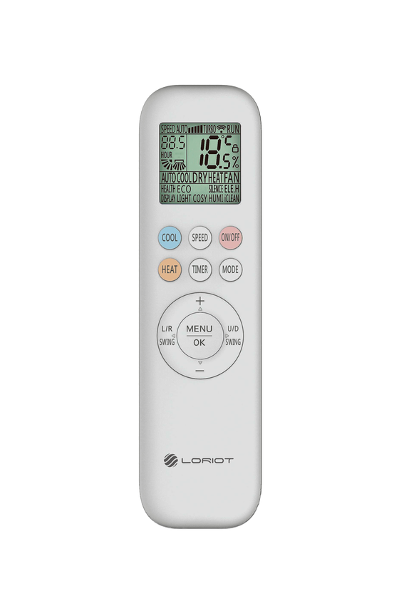 Настенный кондиционер Loriot LAC-09TPRI, мощность охлаждения 2.6 кВт, мощность обогрева 2.63 кВт, обслуживаемая площадь 25 м2, хладагент R32, инвентор, ионизатор
