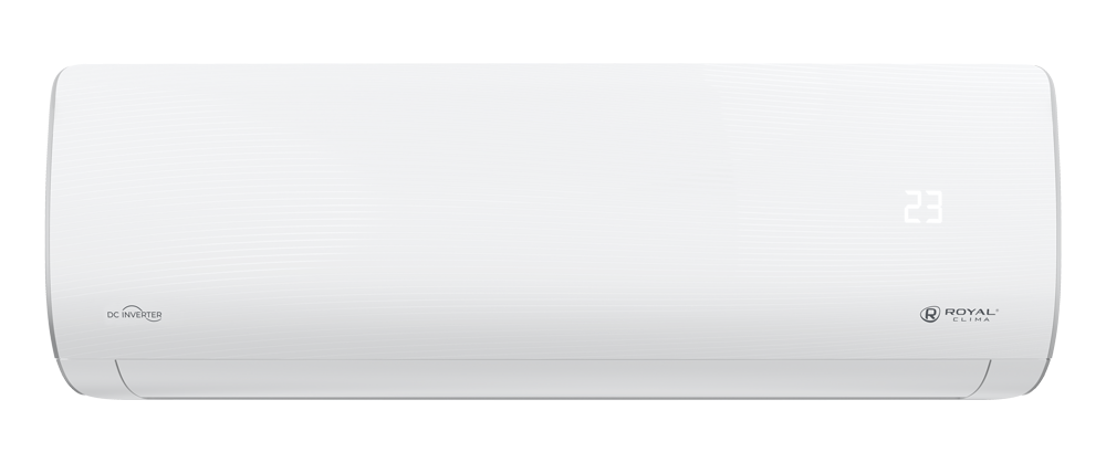 Royal Clima Aria Inverter RCI-AR35HN — инверторный кондиционер, предназначенный для охлаждения и обогрева помещений до 35 м². Дизайнерский внутренний блок выполнен в классическом белом цвете, с перфорацией лицевой панели и серебристыми вставками по бокам.
