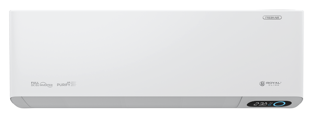 Royal Clima серии FRESH STANDARD FULL DC EU Inverter - это настенный кондиционер, который используется для эффективного изменения микроклимата в помещении. Прибор способен очищать, стерилизовать и обеззараживать воздух. Данное устройство удобно в использование, практически не создаёт шума во время работы и имеет высокую производительность.