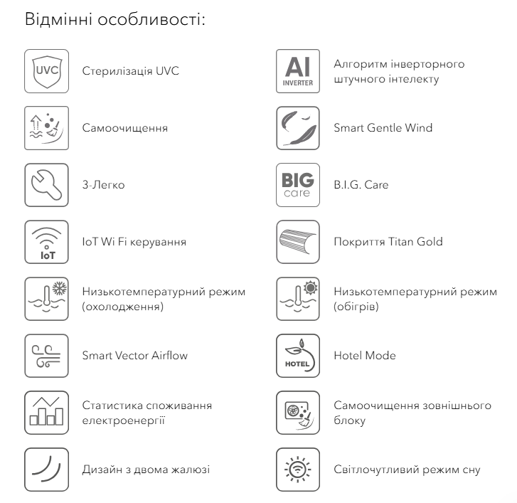 Кондиционер спроектирован таким образом, чтобы его монтаж и обслуживание были максимально простыми, а передовые технологии очистки воздуха, включая ионизатор и ультрафиолетовую лампу, обеспечивают безопасный и здоровый микроклимат в доме. Благодаря технологии Smart Gentle Wind воздух распределяется мягко и деликатно. При этом устройство эффективно функционирует в режиме обогрева даже при экстремально низких температурах до -30°C.