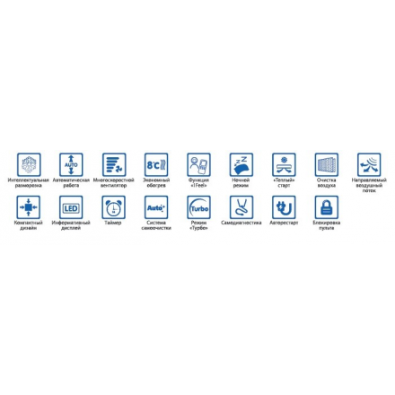 Пульт дистанционного управления имеет детскую блокировку, встроенные часы и таймер, который позволяет запрограммировать кондиционер для включения и выключения в удобное вам время. Подсветку дисплея пульта дистанционного управления возможно отключить.