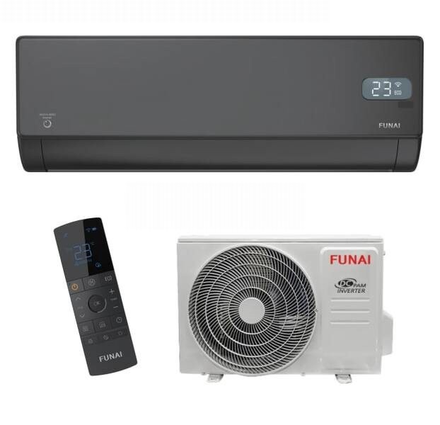 Сплит-система Funai Akoya Nero Inverter RAC-I-AN75HP.D01, мощность охлаждения 7,3 кВт, мощность обогрева 8 кВт, обслуживаемая площадь 70 м2, хладагент R 32, инвертор, Wi-Fi - есть