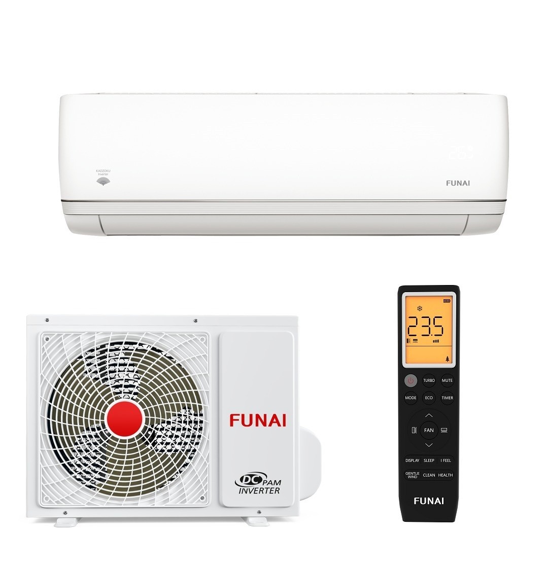 Сплит-система Funai RAC-I-KD30HP.D01 серии Kadzoku Inverter, мощность охлаждения 2,8 кВт, мощность обогрева 3 кВт, обслуживаемая площадь 30 м2, хладагент R 32, Wi-Fi: опция
