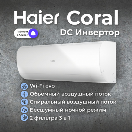 Настенный кондиционер Haier Coral DC-Inverter поможет быстро создать комфортный микроклимат в комнате, обеспечив оптимальный температурный режим в летний или зимний период. Кроме того, устройство эффективно борется с бактериями и вирусами в воздухе, заботясь еще и о здоровье людей.