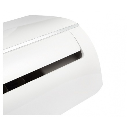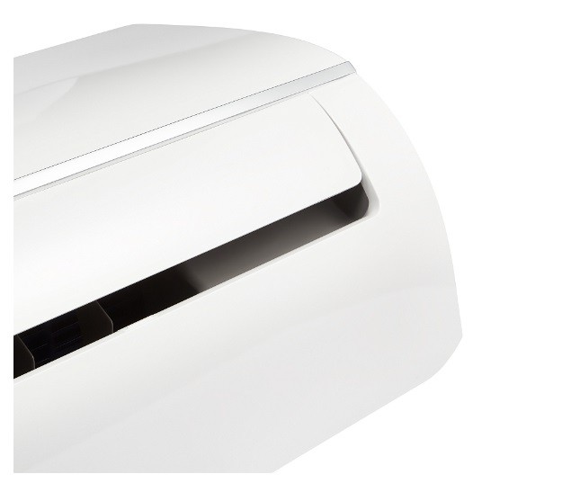Внутренний блок сделан в классическом белом цвете и при этом имеет достаточно компактные габариты, позволяющие установить около окна или над дверным проходом. Оснащен он фильтром грубой очистки от пыли. Этот HD-фильтр имеет более плотное сечение, позволяющее удерживать даже мелкие бытовые загрязнения.