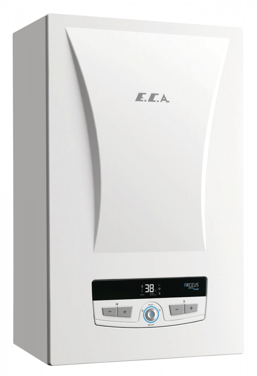 Электрический котел E.C.A Arceus HM - двухконтурный со встроенным пластинчатым теплообменником на ГВС. Отличается компактными габаритами и простой установкой. Оснащён нагревательным элементом с трехступенчатым регулированием мощности и рассчитан на создание отопительного контура и контура ГВС.