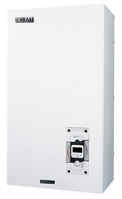 Аварийный самовозвратный датчик защищает котел от перегрева. Прибор в качестве теплоносителя может использовать и воду, и незамерзающие жидкости. Немаловажная для белорусских условий возможность работы при перепадах напряжений. Для электрического котла Эван UNIVERSAL диапазон сохранения работоспособности составляет от 180 до 260В. Индикация кодов аварийных ситуаций облегчает сервисную диагностику котла.