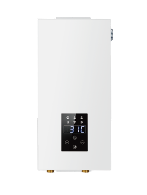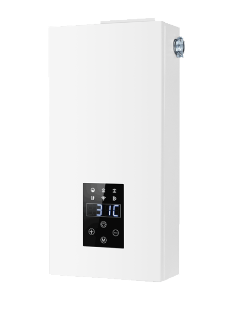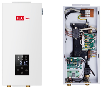 Электрический котел TECLine BQ имеет минимальную комплектацию и в ней отсутствует циркуляционный насос, расширительный бак, сбросной клапан и автоматический воздухоотводчик. Такой котел идеален для работы в качестве резервного источника тепла, например в системах с твердотопливными котлами. Модификации котла BQ c мощностью от 9,5 кВт имеют встроенную систему управления котлом через сеть WiFi с помощью обычного смартфона. Такое подключение дает возможность дистанционно изменять температуру в доме, менять настройки и контролировать правильность работы котла.