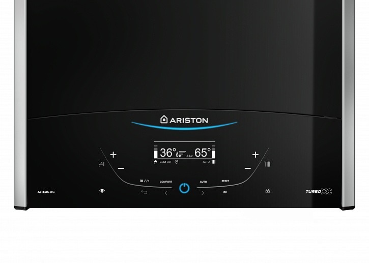 Новинка 2021! Медный первичный теплообменник. Встроенный WIFI! Сенсорная панель, русифицированное меню, функция авто, модулирующая горелка, высокий КПД, привлекательный внешний вид. Двухконтурный настенный котел Ariston ALTEAS Turbo XC 30 FF подходит для зданий и помещений различного назначения с отапливаемой площадью до 300 кв.м. Котел предназначен для обогрева радиаторами, конвекторами или теплыми полами, а так же для нагрева горячей воды для хозяйственных нужд. Теплообменник ГВС увеличенной мощности позволяет в короткие сроки нагревать большое количество воды. Новый теплообменник из нержавеющей стали для максимальной прочности. Инновационная система зажигания, электронное управление горением для оптимальной производительности. Компактная конструкция. Большая сенсорная панель управления. Передняя панель из закаленного стекла, устойчивого к царапинам с интуитивно понятным управлением. Модем Wi-Fi установлен на заводе в котел - связь с Ariston NET. Топовая линейка котлов Ariston ALTEAS Turbo XC 30 FF - это новое поколение традиционных систем для полного управления отоплением с дистанционным подключением. Новая система с синергией четырех технологий обеспечивает исключительную производительность. Передняя часть корпуса покрыта специальным стеклом UltraSafe.