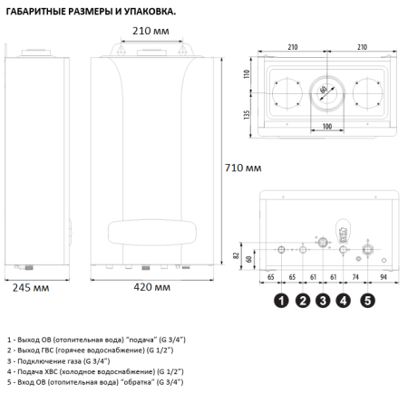 | Подключение контура ГВС | 1/2 дюйм |