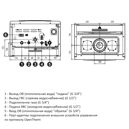 | Диаметр подключения дымохода | 60/100 или 80/80 мм |