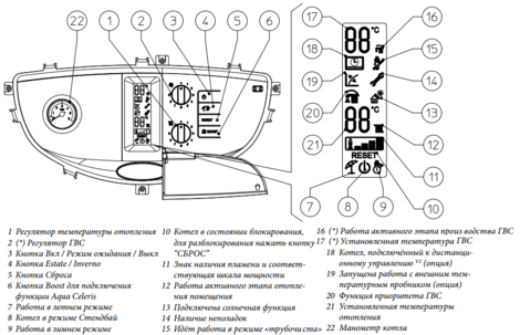 Данная модель удобна в использовании, т.к. у котла есть цифровая панель управления, которая отображает состояние котла, можно регулировать температуру отопления и температуру горячей воды. Благодаря наличию микропроцессора, у котла есть функция диагностики неисправностей.