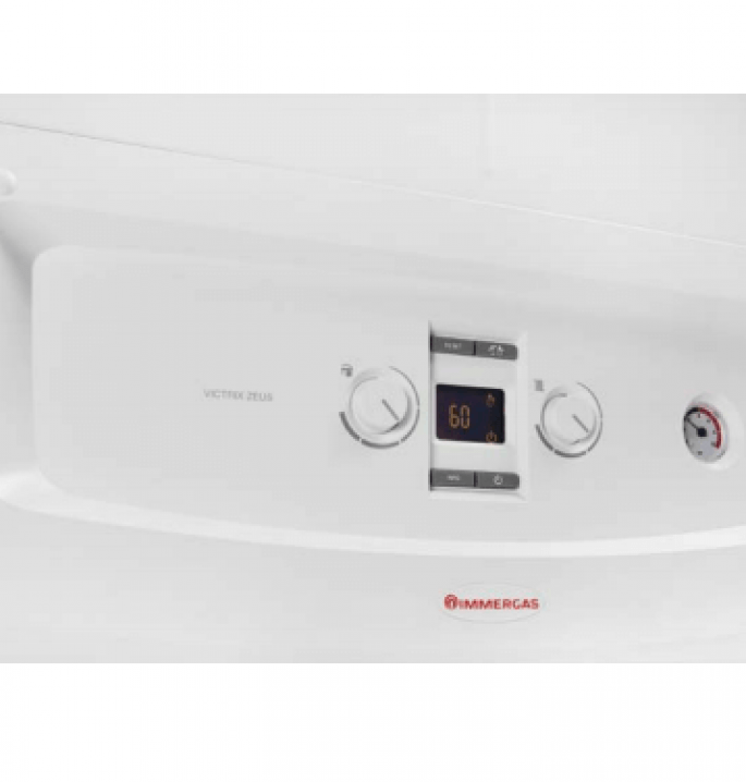 Отопительный котел Immergas Victrix ZEUS Superior – газовый настенный отопительный аппарат большой мощности, предназначенный для отопления и приготовления горячей воды (встроенный бойлер на 54 л). Отвод продуктов сгорания происходит принудительным путем через специальную систему дымоудаления. Мощность котла регулируется горелкой, модулируемой в диапазоне 20-100%.