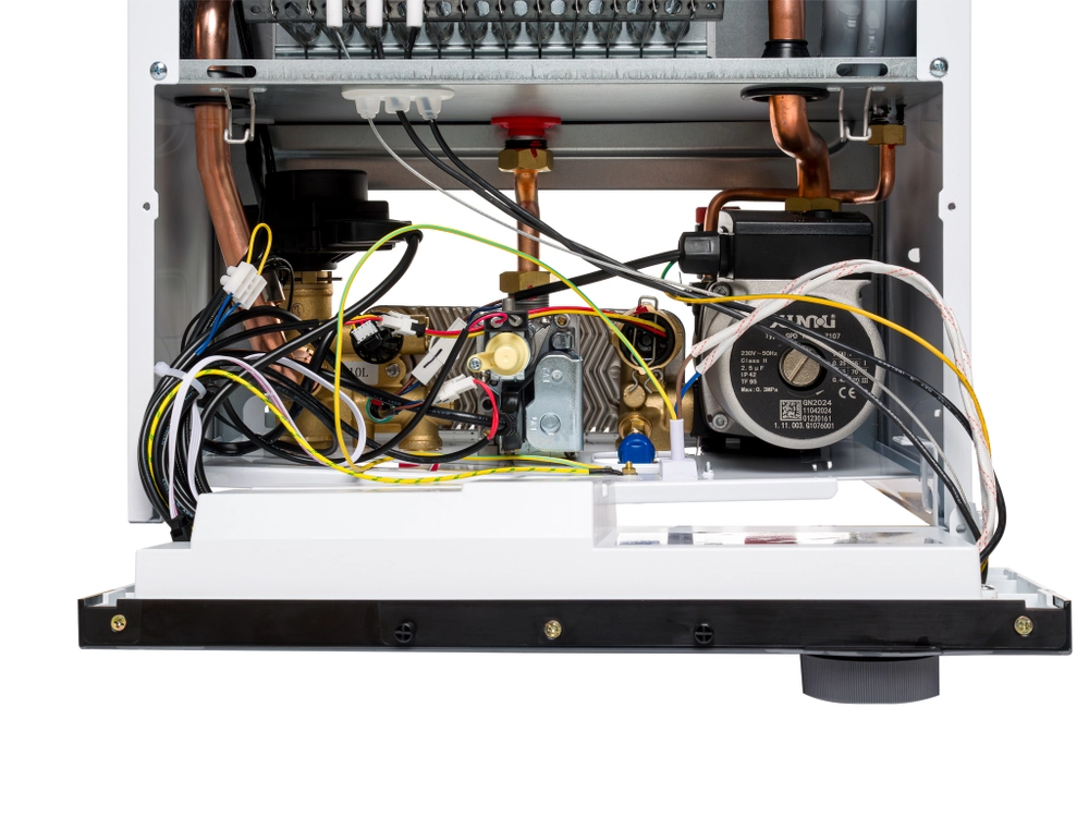 Газовый котел Kotitonttu Suari S-24 DК – тип установки настенный, тип двухконтурный, камера сгорания закрытая, мощность 24 кВт, площадь обогрева 200 кв. м., гарантия 36 месяцев