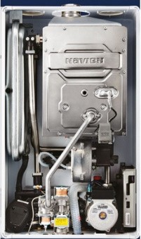 Газовый настенный котел фирма изготовитель NAVIEN модель DELUXE S 24K COAXIAL имеет два контура, отопление и приготовление горячей воды. Совершенно новый отопительный аппарат Navien Deluxe S 24K coaxial оснащен закрытой камерой сгорания, расширительным баком и насосом циркуляции. Выделяется новая модель Navien Deluxe S 24K coaxial наличием манометра на внешнем корпусе котла, отлично от предыдущей модели сделаны выводы присоединения труб отопительного контура и ГВС.