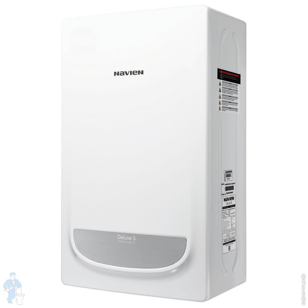 Котел газовый Navien Deluxe S 24 K – тип установки настенный, тип двухконтурный, камера сгорания закрытая, мощность 24 кВт, площадь обогрева 240 кв. м., выносной пункт управления в комплекте