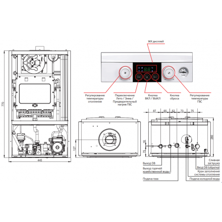 | Материал вторичного теплообменника (ГВС) | Нержавеющая сталь |