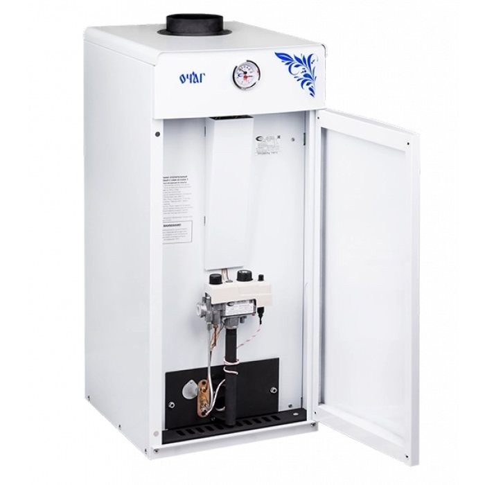 Напольный газовый котел Очаг Премиум АОГВ - 8 Е одноконтурный мощностью 8 кВт, открытая камера сгорания, площадь обогрева 80 кв. м.