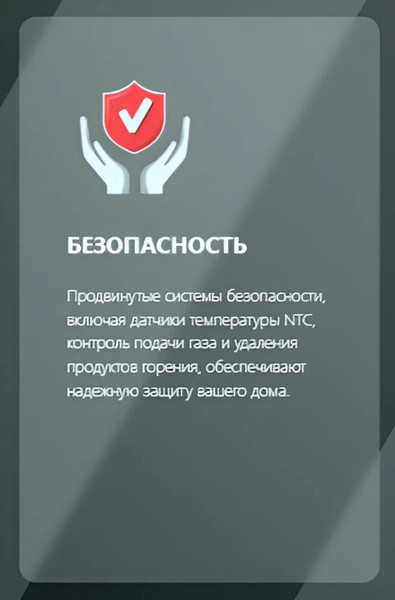 Сенсорная панель управления и информативный дисплей упрощают взаимодействие с устройством. Минималистичный дизайн с серой матовой окраской гармонично вписывается в современные интерьеры. Для корректной работы котла необходимо соблюдать максимальную допустимую длину трубопроводов.