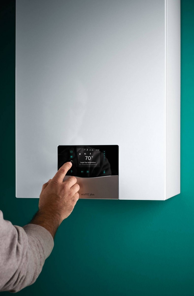 Vaillant ecoTEC plus VU 35CS/1-5 – совершенно новый одноконтурный конденсационный газовый котел мощностью 34,8 кВт. «Одноконтурный» означает, что для нужд ГВС необходимо установить бойлер косвенного нагрева. При соответствующем запросе, который поступает от датчика водонагревателя на плату котла, трехходовой клапан переключает поток теплоносителя с контура отопления на загрузку бойлера. Как и любой конденсационный газовый котел, ecoTEC настоятельно рекомендуется использовать преимущественно в низкотемпературных системах отопления: идеально подойдут системы, в которых превалируют теплые полы. За счет передачи скрытой теплоты конденсации водяных паров, которые содержатся в продуктах сгорания, в систему отопления вы получаете прирост производительности, а значит, и экономию газа до 15% в год. Котлу присвоена максимальная оценка по классификации NOx – 6. Новый дизайн корпуса и панели управления можно охарактеризовать как строгий и технологичный.