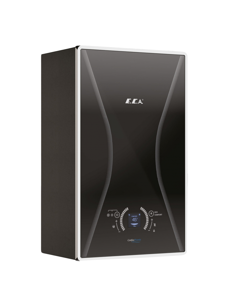 Настенный газовый котел ECA (ЭКА) CONFEO PREMIX HM 30 KW - это эффективное оборудование с закрытой камерой сгорания, рассчитанное на организацию контуров отопления и горячего водоснабжения. Модель отличается особенным дизайном, так как выполнена в черном цвете со стеклянной передней панелью.