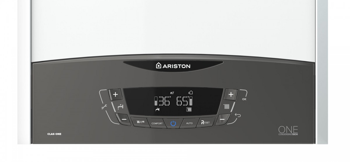 Газовый котел Аристон CLAS ONE 24 – тип установки настенный, тип двухконтурный, тип конденсационный, мощность 24 кВт, площадь обогрева 240 кв. м., гарантия 36 месяцев