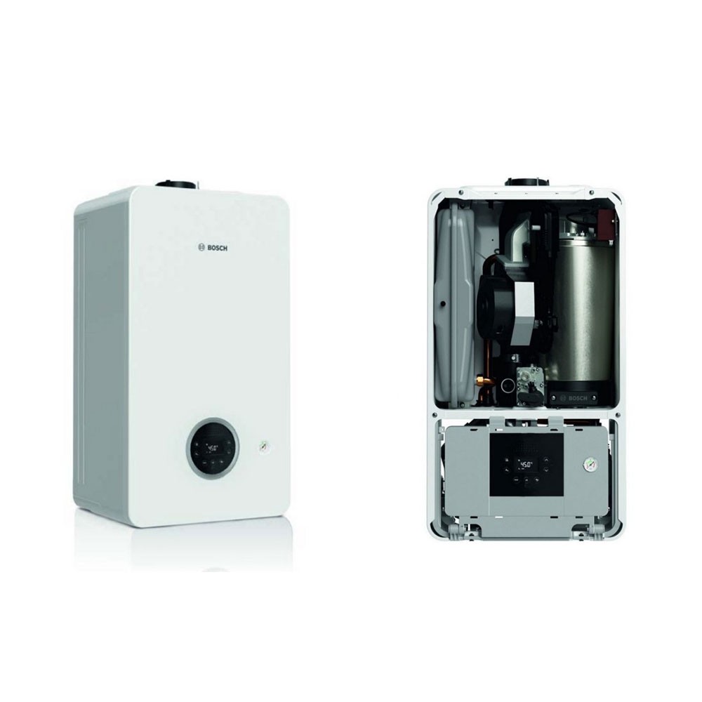 Газовый котел БОШ Condens 2300iW 24 P – тип установки настенный, тип одноконтурный, камера сгорания закрытая, мощность 24 кВт, площадь обогрева 240 кв. м., гарантия 36 месяцев