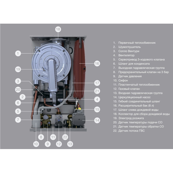 Конденсационный газовый котел E.C.A. Confeo Premix 30 HST, настенный, одноконтурный, камера сгорания закрытая, мощность 30 кВт, площадь обогрева 300 кв. м., циркуляционный насос
