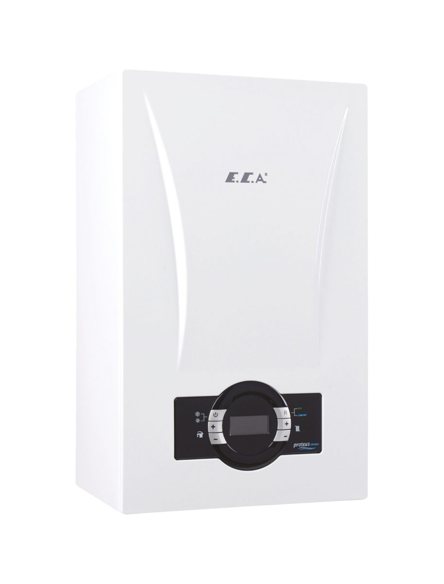 Газовый котел ECA Proteus Premix 30 HCH NG предназначен для отопления частных домов, коттеджей, загородных домов, дач площадью до 300 кв. м. Этот котел имеет раздельные теплообменники, что является большим преимуществом там, где вода богата солями кальция и магния, другими словами, вода жесткая. По умолчанию котел работает на природном магистральном газе, но при необходимости котел можно переоборудовать для работы на сжиженном газе, для этого необходимо приобрести комплект жиклеров. В своей конструкции котел отопления уже имеет циркуляционный насос Grundfos, поэтому необходимость в его приобретении отпадает Для работы платы управления конденсационного котла требуется его подключение к электрической сети 220 В. Для сохранения гарантии производители рекомендуют установку стабилизатора напряжения. Как выбрать стабилизатор, вы можете проконсультироваться у нашего специалиста. Закрытая камера сгорания (по-другому такие котлы называют турбированными) подразумевает наличие в данном котле вентилятора, который принудительно осуществляет забор воздуха и удаление продуктов сгорания на улицу или коллективный дымоход. Для таких котлов обычно используют коаксиальные дымоходы — "труба в трубе".