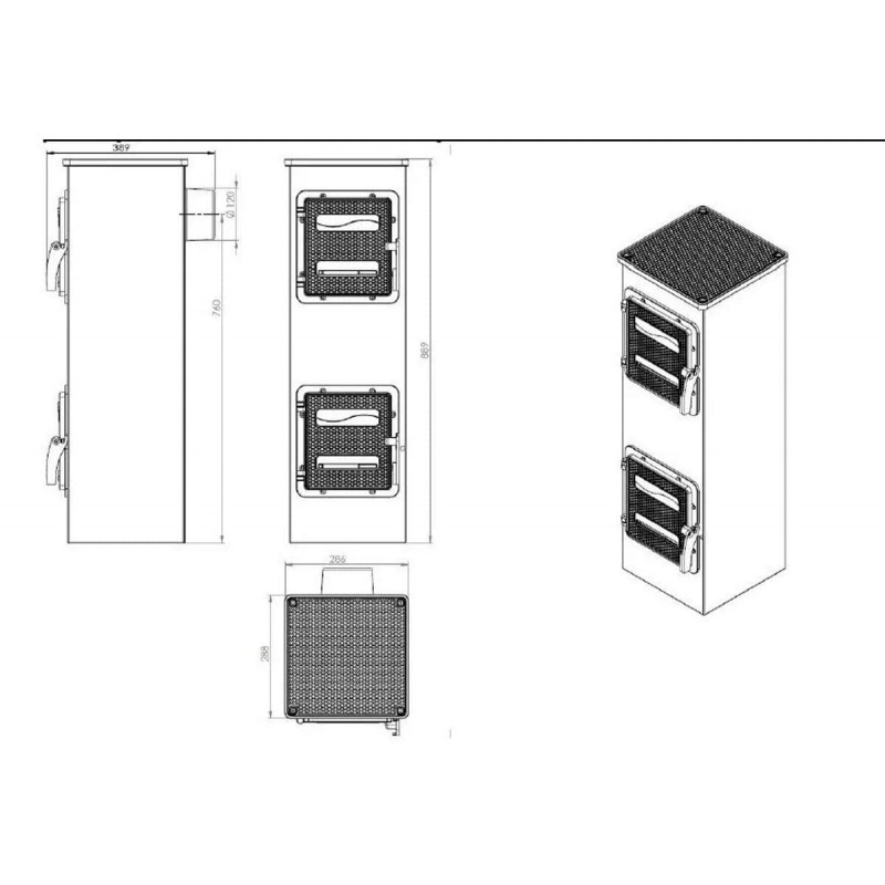 Отопительная печь Norfdflam Genua предназначена для установки в различных хозяйственных помещениях небольшого размера. Печь изготовлена из специальной конструкционной стали. Дверцы печи, а также верхняя крышка и колосниковая решетка изготовлены из чугуна. Верхнюю горизонтальную поверхность можно использовать для приготовления пищи. Дно топочной камеры выложено шамотом, а стенки вермикулитом. Вермикулит в топочной камере не только защищает корпус печи от прогорания, но и способствует увеличению КПД. Поскольку вермикулит является жаропрочным изоляционным материалом, он способствует повышению температуры внутри топочной камеры, а значит более полному сгоранию дров. Поэтому в печах, футерованных вермикулитом, всегда остается меньше пепла. Отопительная печь Nordflam Genua способна отапливать помещения объемом до 150 м3.