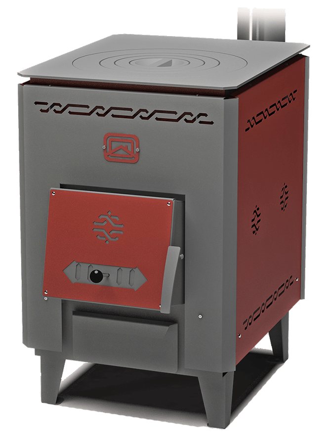 Отопительная печь Теплодар Батыр 150 - печь для отопления дома, дачи, гаража, теплицы и других строений с общим объемом отапливаемых помещений от 70 до 150 м.куб. Топка печи изготовлена из 5 мм конструкционной стали. Колосник у печи чугунный, увеличенный в размере, по сравнению с другими печами Теплодар. За динамичный нагрев воздуха отвечает кожух-конвектор охватывающий топку печи по всему периметру. Дверца печи с дозатором подачи вторичного воздуха (для режима дожига газов). Сверху печи имеется варочная поверхность со съемными чугунными кольцами для приготовления или разогрева пищи. На печь Батыр можно установить казан! Можно использовать уголь в качестве топлива при условии установки дополнительной защиты топки печи "Комплект под уголь Батыр (Комплект М)" (комплект приобретается отдельно).