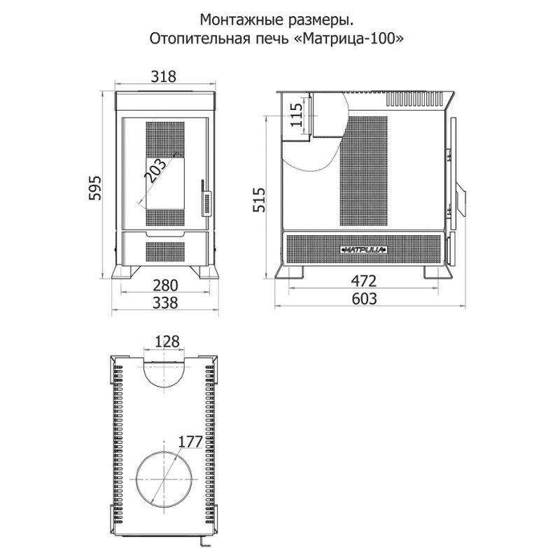 Печь отопительная Теплодар Матрица 100 служит для обогрева дач, домов, гаражей, бытовок и пр. Печь способна отопить помещение объемом от 70 до 100 м.куб. Топка печи изготовлена из конструкционной стали толщиной 3 мм, в термически нагруженных местах применена нержавеющая сталь (верхние отбойники, съемная пластина задней стенки).