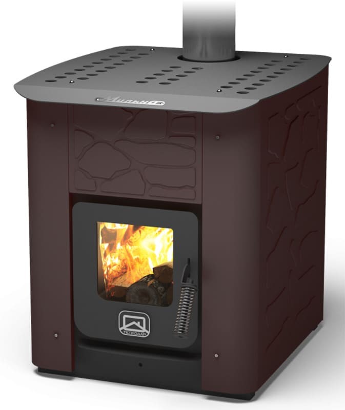 Отопительная печь Теплодар Мильна 100 из конструкционной стали - Тип: дровяная, Материал печи: сталь, Материал топки: сталь, Исполнение: центральное (островное), Выход дымохода: верхний, Установка: напольная, Мощность: 10 кВт, Максимальный объем отапливаемого помещения: 100 м³
