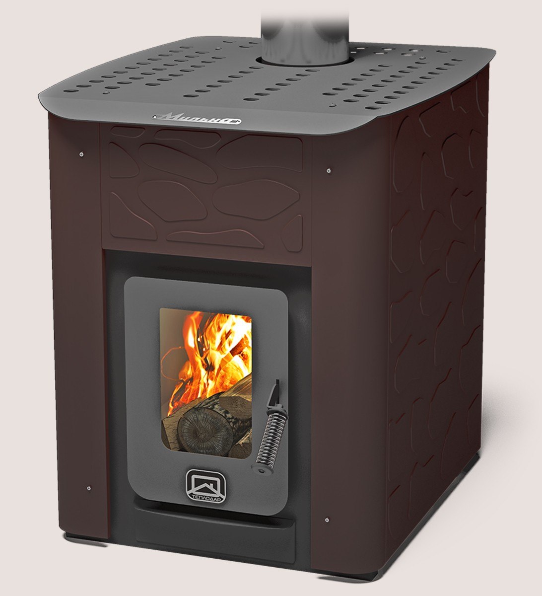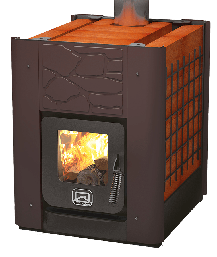 Отопительная печь Теплодар Мильна 200 из конструкционной стали. Тип: дровяная, Материал печи: сталь, Материал топки: сталь, Исполнение: центральное (островное), Выход дымохода: верхний, Установка: напольная, Мощность: 20 кВт, Максимальный объем отапливаемого помещения: 200 м³