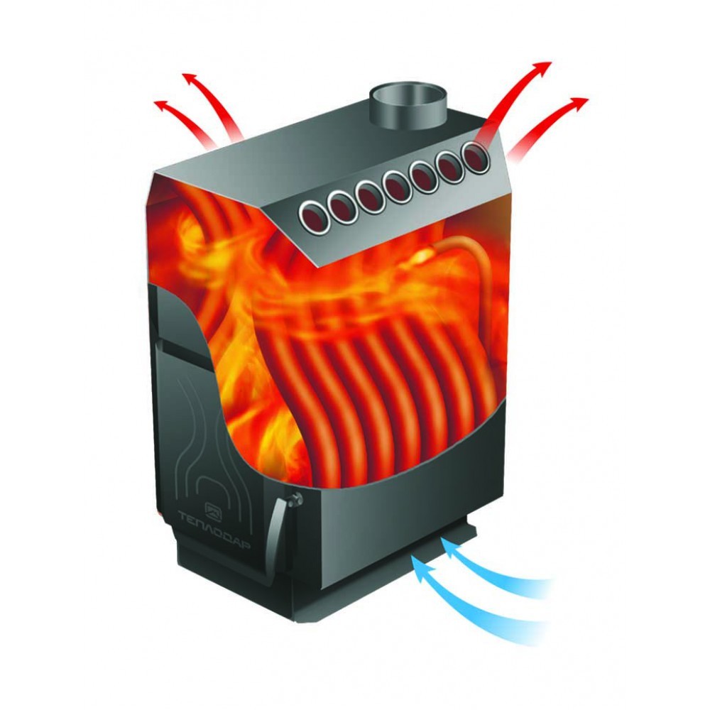 Печь отопительная Теплодар ТОП-200 ДЧ предназначена для отопления дач, домов, гаражей, теплиц и других строений. Основная топочная камера печи и две дополнительные для дожига дымовых газов образованы сложным изгибом конвекционных труб расположенных в два ряда.