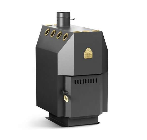 Печь отопительная Термофор ДОЦЕНТ на дровах из конструкционной стали со стальной дверью и трубой сверху.