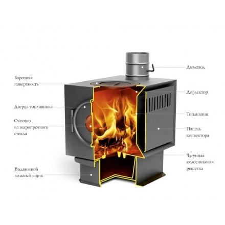 Отопительно-варочная печь «Золушка» подходит для воздушного отопления небольших жилых помещений, гаражей, подвалов и КУНГов, а также для приготовления и разогрева пищи.