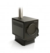 В центре дверцы имеется окошко из жаропрочного стекла SCHOTT ROBAX®, что позволяет визуально контролировать процесс горения. Дверка топки, вращаясь на шарнире, открывается на 140°, что делает загрузку топлива более удобной и безопасной. Механизм запирания надежно фиксирует дверку простым поворотом ручки.