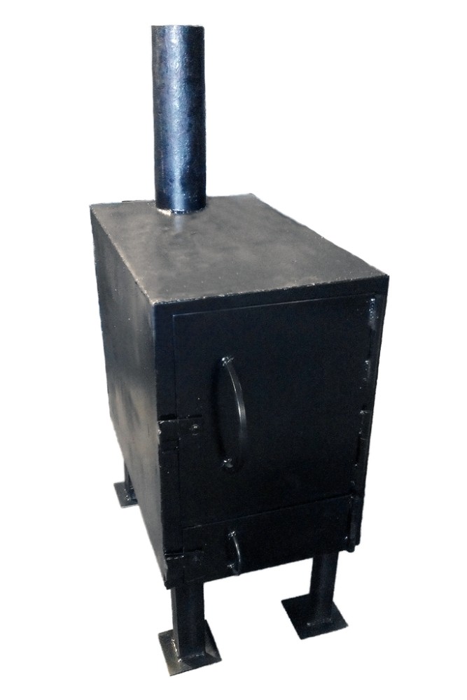 Эффективное средство для быстрого обогрева в холодное время. Высокая надежность металлической конструкции печей обеспечивает бесперебойный обогрев Вашего помещения в любых условиях. Печь буржуйка прекрасно подходит как для временного обогрева помещений, так и в качестве постоянного источника тепла в течении многих лет. Установка буржуйки не требует специального места, Вы можете установить ее в любом помещении, где можно вывести дымоход. Буржуйка изготавливается из листов стали Ст3 толщиной 4 мм. Для дымохода используется труба диаметром 102 мм.